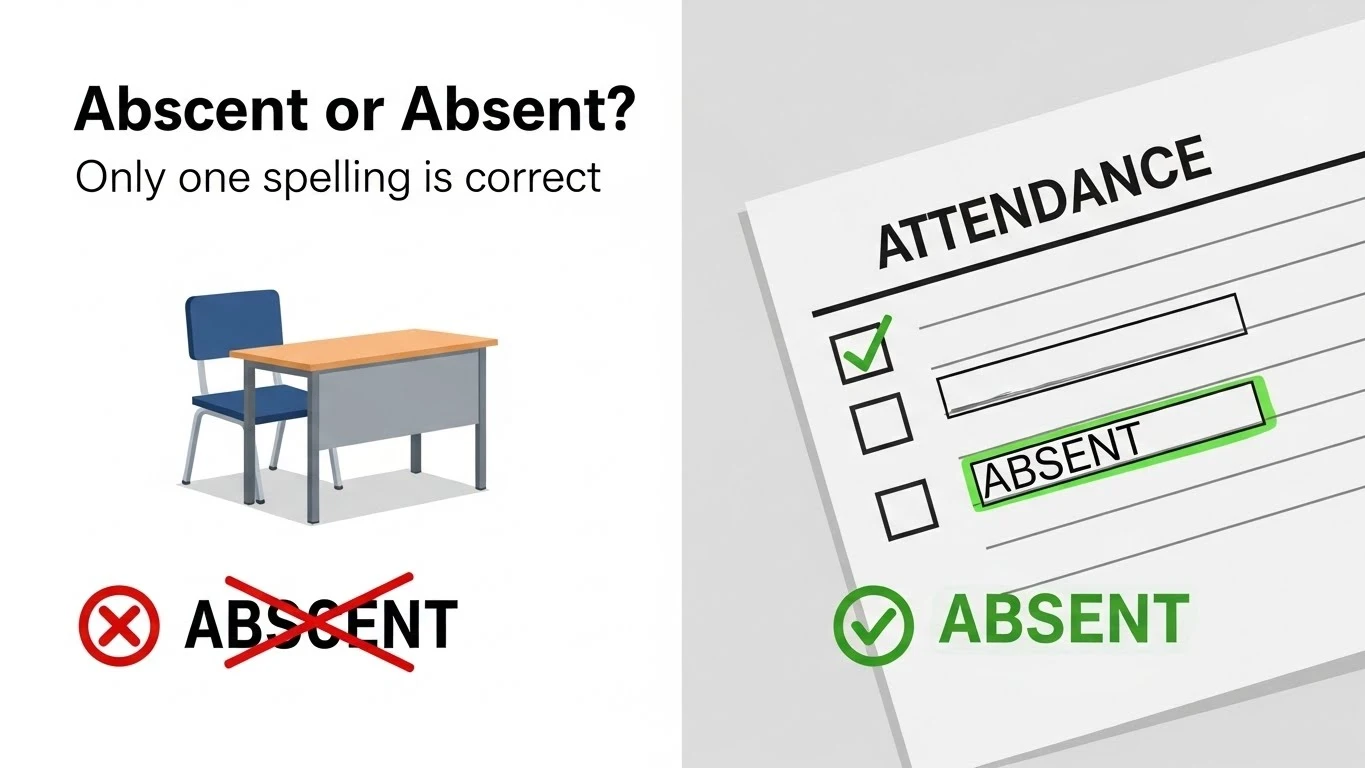 Abscent is a spelling mistake with no accepted meaning. Using it in exams, attendance records, emails, or professional writing can make your work look careless and reduce clarity. Since this word is frequently used in formal contexts, spelling it correctly is especially important.