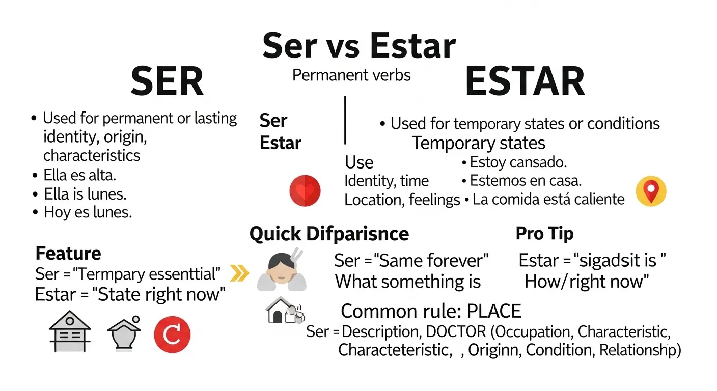 That confusion is very common for learners. Many people search “ser or estar” because both verbs look similar but follow different rules.
